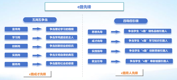 持续开展“五岗五争当”活动,设立学习、实践、服务、创新、宣传五类“先锋岗”,引导学生党员争做“成才先锋”。推行“四导四引领”行动,组建思想先导、成才向导、实践指导、服务引导4支“先锋团队”,引领教师党员争当“育人先锋”。组织“e路先锋”年度评选,每年选树10名学生党员“成才先锋”、5名教师党员“育人先锋”。近三年,教师党员主持国家级、省部级项目18项,获国家级教学成果奖二等奖、省科学技术进步一等奖、省高等教学成果奖一等奖等7项;指导学生在省级以上学科竞赛中获奖400余项;88名学生考取华东师范大学、华北电力大学等博士、硕士研究生。